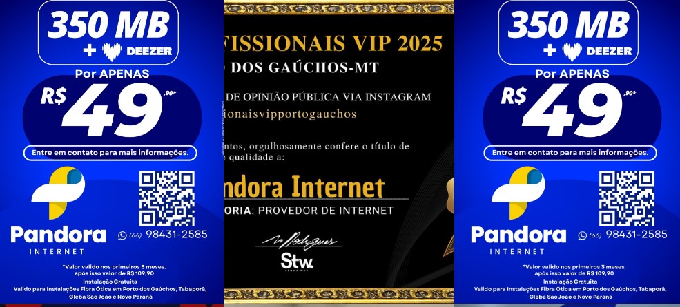 Na Pandora Internet, você e sua família encontram uma série de planos personalizados que, através de uma tecnologia de ponta, garantem conexão de qualidade, e mais uma série de benefícios, como: suporte técnico especializado, atendimento de primeira e MUITO MAIS! 😍